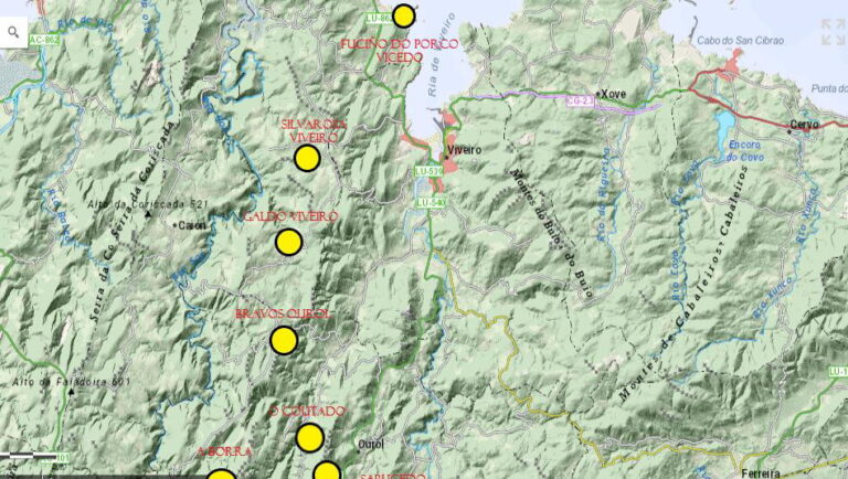 “Por el Gobierno Civil se ha admitido una solicitud presentada por D. Juan Varela, vecino de esta ciudad, como apoderado de D. Pedro de Llano, que desea adquirir 27 pertenencias de material de hierro con el nombre de Armada, sita en los parajes llamados Montes de Chavín y de la Armada de las parroquias de Galdo y Bravos de los ayuntamientos de Vivero y Orol “
