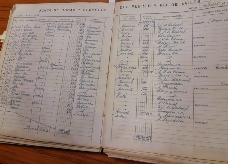 Os datos que expoño de seguido saíron do rexistro da “ Junta de Obras y Servicios del Puerto y Ría de Avilés “, onde con todo detalle, nos libros aparecen, entre outros datos: o nome do buque; o día de chegada; porto de procedencia; clase de carga que conduce; Toneladas de carga; consignatario e, no caso do mineral en observacións o destino deste: ENSIDESA ou Siderurgia Asturiana en Mieres.